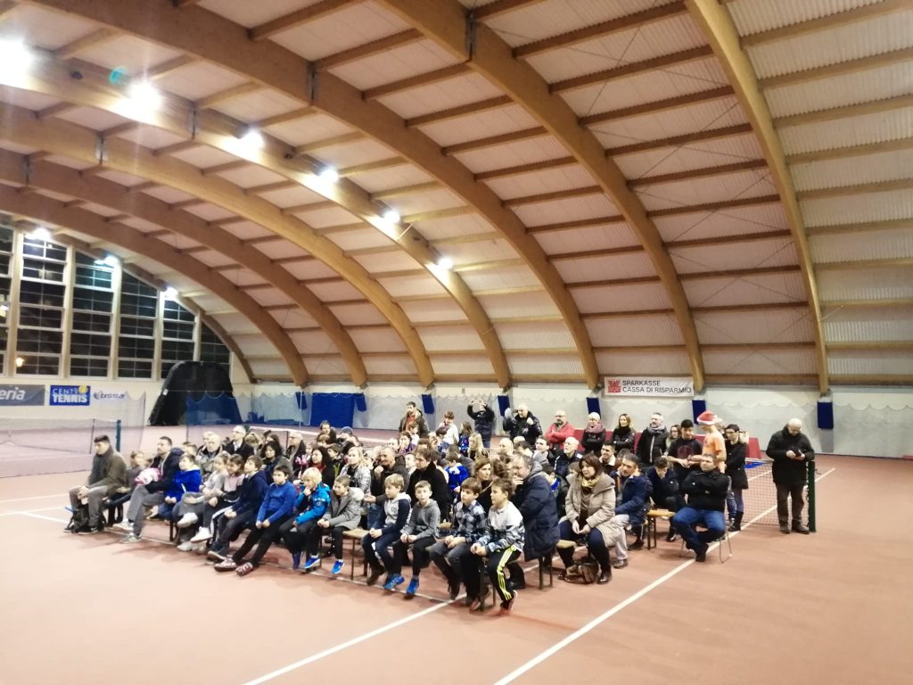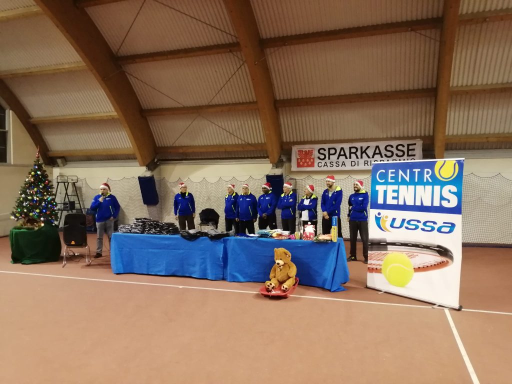Grande partecipazione alla tradizionale festa di Natale della Scuola Tennis USSA, tenutasi ieri sera presso la Tennishalle di via Parma, a Bolzano. Un occasione non solo per scambiarsi gli auguri di Natale e per un brindisi in compagnia, ma anche per consegnare i meritati premi del Torneo di Natale ai nostri atleti.