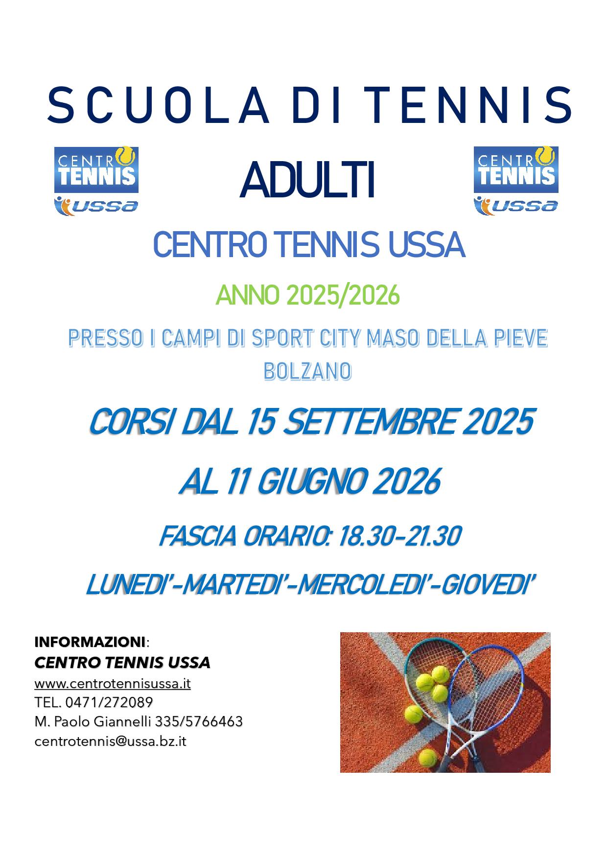 - Segreteria: centrotennis@ussa.bz.it - 0471 272089 - viale Trieste 17, Bolzano