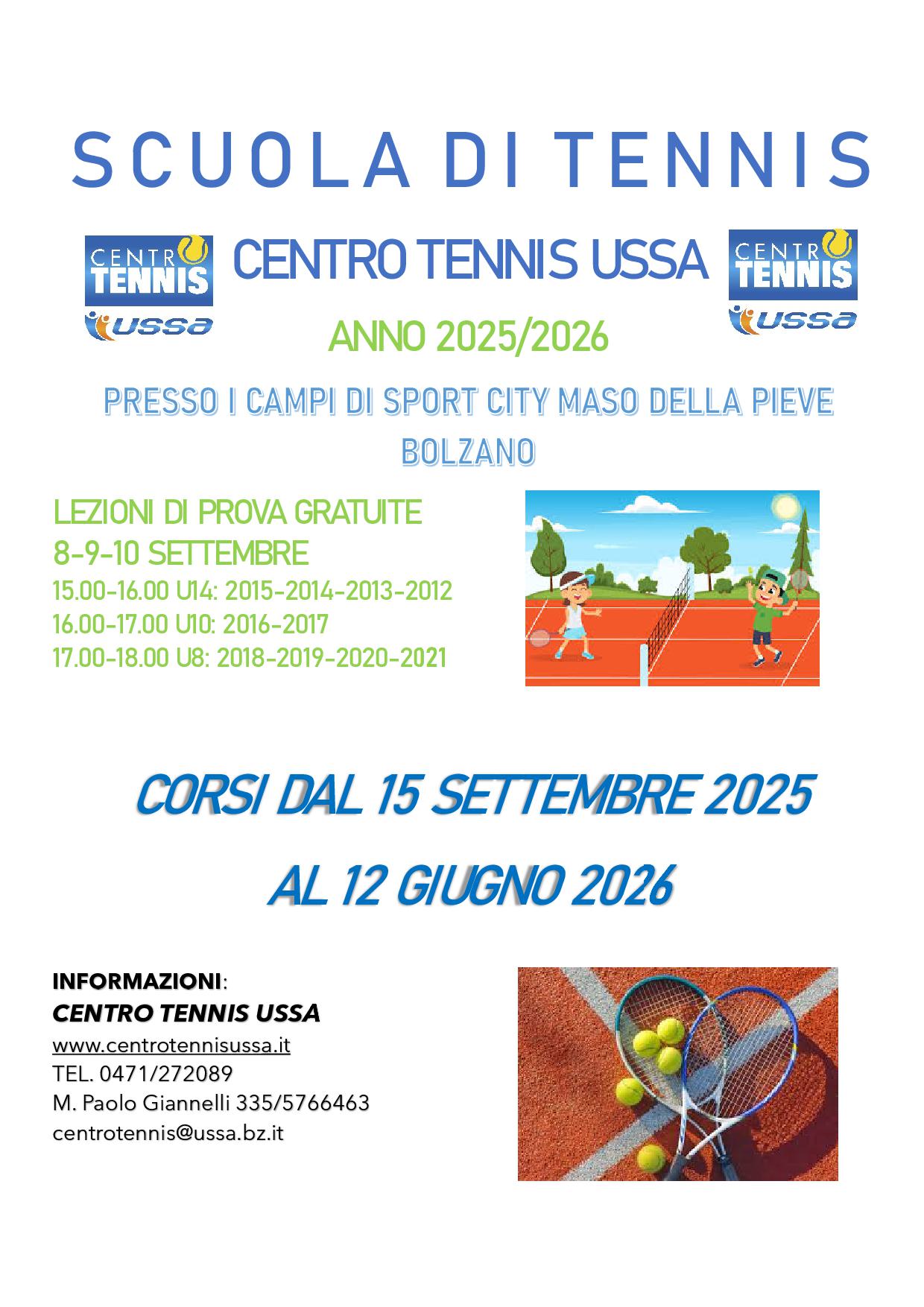 Prenotazioni: via Parma: 331 4111089 - 0471 253 502 - Segreteria: centrotennis@ussa.bz.it - 0471 272089 - viale Trieste 17, Bolzano